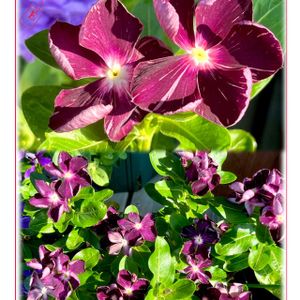 ニチニチソウ 『藍染め絞り』 全然藍染めカラーではありませんね、赤紫というか、赤茶というか。絞り模様も薄めです😅 元気に咲いているだけでOK🙆♀️…ということで。