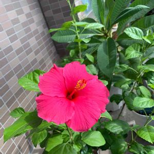 ただいま戻って参りました💦💦💦帰ってきたらハイビスカス🌺が咲いてた😭 今日も元気いっぱい咲いててありがとね😭全然オシャレ感無いけど素直に嬉しい😭 てか居ない時に咲いてたから余計ごめんね😭 #ハイビスカス#開花