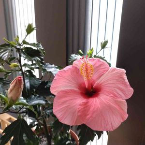朝がゆっくりなハイビスカス赤🌺 ピンクは朝が早いんよー品種の違いかな 今日は曇ってるから、余計にゆっくり 昔はハイビスカスって 枯らしてしまうイメージだった 買ってきても蕾が落ちて 咲かずに枯れる😩💦 品種改良されてるからかな ネットで育て方を調べられるからかな よう育つ 1年冬越しても大丈夫でした 家をジャングルにしたいので 剪定は混み合った枝と葉だけ 125センチまで大きくなったよ(鉢含む) どこまで大きくなるか 楽しみ〜🙌
