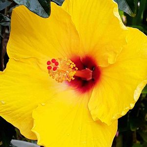 今朝のハイビスカス🌺 サマーブリーズ おはようございます⛅ 昨日は雨☔が降り寒かったですね💦😓 このサマーブリーズ🌺さん 「サマー」とついてますが暑さに弱く 寒さに強い❔ 昨日咲いて今日二日目です😉💕⤴ 雨粒がついてお花🌺もピカピカに💕💕 元気良く咲いてます😉 とっても嬉しいです~(* ´ ▽ ` *)♬