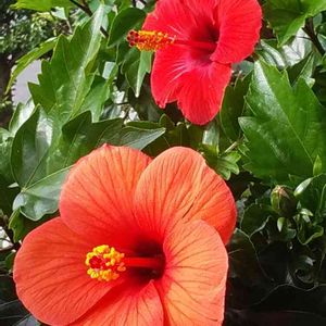 おはようございます⛅ 今日は梅雨の晴れ間 多洗濯できそう🎵👕 後輩先輩ハイビスカス🌺 咲き揃いました💕🎶 此れから楽しみ~♪ヽ(´▽`)/🎶