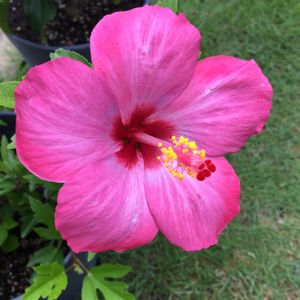 よく咲いてくれるハイビスカス🌺 花も嬉しいけど、弱々しかった葉が 濃い濃い緑色になり、とっても嬉しい