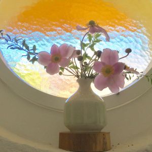 ウイスキーが入っていた有田焼の花瓶に百合をただ挿しました。この器、口が狭くて難しいんですが、案外こんな風に投げ入れてしまう方が、合うように思います。