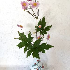 レンギョウとダリア2種で生けました。写真にすると主枝であるレンギョウがとても長く見えてしまいます。