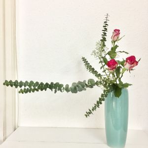 ユーカリ(ベイビーブルー)、薔薇、カスミソウを生けました。