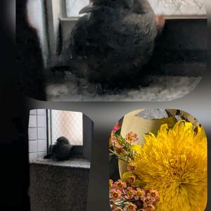 昨夜 お風呂の窓を 開けると◼ お隣のマンションの 窓辺に何かがいました。 逆光でよく見えませんでした。 朝見ると…居ませんでした。 朝🩵 picズーム 幼い鳩かなと 思います。 今夜も来るといいな…♡