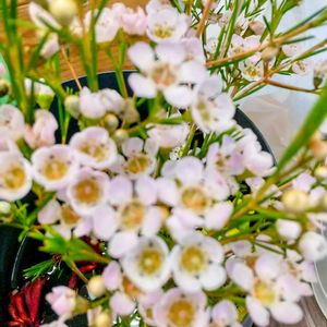 ワックスフラワー💠 フトモモ科 小低木 梅の花にワックスがかかった様な可愛い花びらです😃名前の由来ピッタリね♪︎♪︎♪︎♡♡