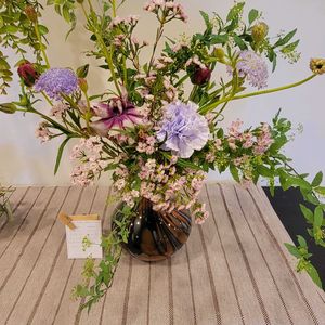 ꕤ…˖*ꕤ…˖お出かけ先の生け花◜..°ꕤ…˖*ꕤ…˖ 1️⃣ピンク🩷とハパプル💜 (ღ*ˇ ˇ*)。o♡ᔆᵘᵗᵉᵏⁱ♡ 2️⃣ブルーレースフラワー 3️⃣カーネーション 4️⃣ラナンキュラス 5️⃣ワックスフラワーとコデマリ