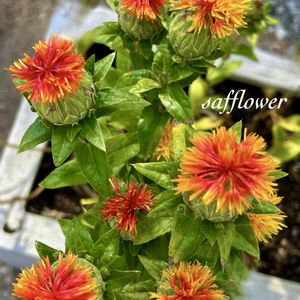 今日のお花*ベニバナ 元気を貰えるビタミンカラー💛🧡 紅花油はビタミンEを豊富に含み、抗酸化作用があるため、健康や美容に良い優れモノ👍✨ 《スライドpic》 ① ~④ 昨年6月・撮影♡