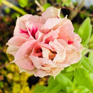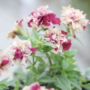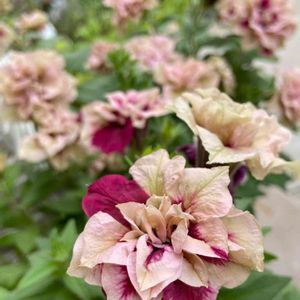 八重咲きペチュニア 花舞姫♡ saleで連れてきたもう1つのコです。 とりあえず、蕾がカットできなくて 咲いてもらいました。この後、切り戻し 今、あっと言う間に、葉っぱが わさわさに〜✨ お花の色が、優しいクリーム色と 深い紅で、すごくステキなコです〜✨ 次の開花これからに期待大です✨ 楽しみ。