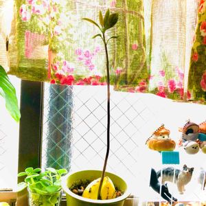 アボカド🥑1号 1号さんは室内で。 室内だとひょろひょろ〜っと伸びて葉っぱも少なめです🌱