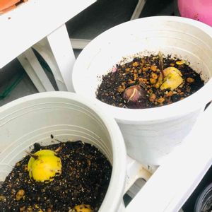 まだまだ寒いのかな〜💦 アボカド🥑ちゃんの葉っぱがクルクル😅 してます。 他の🥑ちゃんの種は土に植えてみました。 あったかくなったら根っこと🌱が出てくれるといいのですが✨