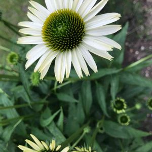 エキナセア グリーンジュエル やっとお顔が見れました😊 爽やか〜✨ 1号は花びら虫に食べられちゃったから 待ち遠しかったよ〜😆💚