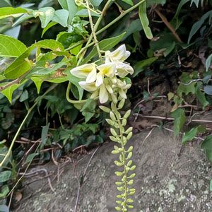 いつもの散歩道なのに初めて🔰見ました✨ 🔍️(あってるかな?🤔) ナツフジ(夏籐) 別名 土用藤 マメ科 フジ属(ナツフジ) 花期 7〜8月 分布 関東南部以西