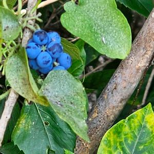 🌀落葉つる性木本🌀 雌雄異株 果実は核果(6~8mmほど)で 球状の実が房状に結実し〰️ 晩秋の頃 ブドウ🍇のように 緑🟢から藍色🔵に熟します🎶 青葛藤(あおつづらふじ) 別名 カミエビ ツヅラフジ科