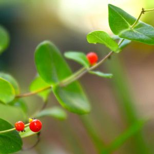 🌲樹に咲く花🌲 雌雄異株又は雌雄同株異花 花は直径15mmほどの黄白色 雄花は中心部が赤♥️ 雌花は中心部が淡緑色💚 実葛(さねかずら) 別名 美男葛(びなんかずら) マツブサ科