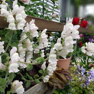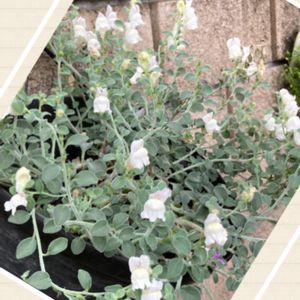這性キンギョソウ🌱🌱 キンギョソウアールグレイ☕️ 可愛くペアで咲きました🎶🎶 名のごとく這う感じで育ってくれて草姿も可愛らしいので、寄せ植えでも活躍出来ます👍 うちは、ペチュニアと一緒に植えています🍀💐 花の色も可愛らしいホワイトなので合わせやすいです😁 もう少し、お互いに咲いてくれたら📸を撮ってみたいと思います🤩