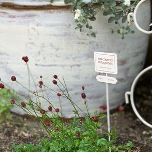 ✱ワレモコウ リトルエンジェル✱ 肉眼で見るとすごーく可愛いのに 写メろうとすると映えないのは私だけ?😂 なのでバッグを白い鉢にしてみた😂 DAISOのピックが赤文字だったので ここに挿してみました(๑˃̵ᴗ˂̵)و ヨシ! 可愛げが足りない越冬鉢は (ロシアンオリーブ植えてます🌱) せめて、と、ミルクペイントざざっ笑。 オリーブの足元に植えているのは ✱キンギョソウ アールグレイ✱
