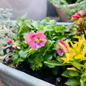 ビオラちゃん❤️ 去年はビオラばっか植えた鉢に いろいろ寄せ植え☺️