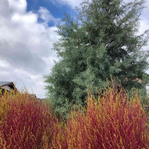 ご近所さんの大きな🌲とコキア② 大きな🌲は もみの木ではありませんでした😅 名前は分かりませんが、葉を触ると 爽やかな香りがしました🤗