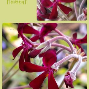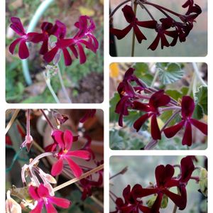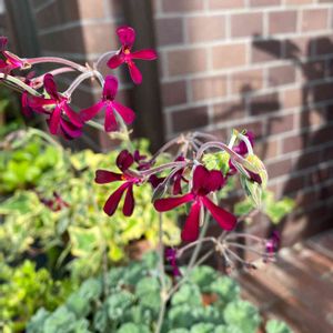 ペラルゴニウム シドイデス 写す時間によって、色がまるで違って見えます。 左下は、日のあたった姿 バーガンディの素敵な色、枝は大暴れします。