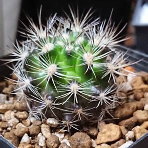 名無しサボちゃん🌵♡ ちっちゃいけど、先が黒い鋭い棘がいぃーっぱい…✸✸✸✸チクチク 刺座には白いモフモフがついてて… (;´▽`ก)この子の名前わかりますか?