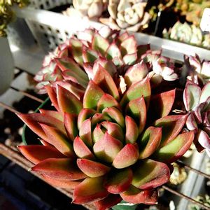 おはようございます♪ 今朝は冷え込みましたね〜🌀 すっきり青空でキリッと気持ち良い❁︎ 松井田バラ園で買ってきたエケベリア達が黒ポットのまま綺麗に紅葉してました😆🍁 休日が雨続きで植え替えも出来ずにやっと昨日寄せられました😊