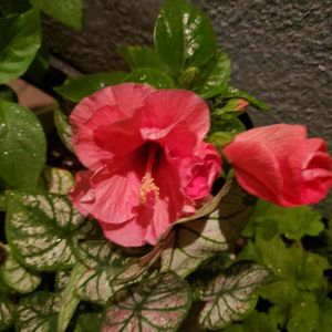 ~ハイビスカス アドニス ダブルピンク~です🌺 キレイな彩りで咲いています💗 従来の🌺に比べて花持ちの良いのと 、 花芽が一度に沢山つくので、 次々に花が楽しめます🎵