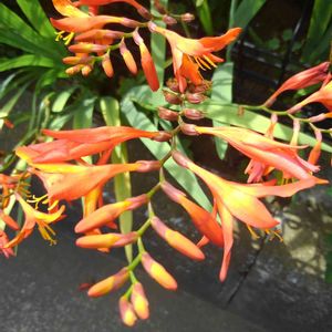 🌺「ヒメヒオウギズイセン(姫檜扇水仙)」‼️_ _ 💠英名 :モントブレチア(montbretia)、クロコスミア _ _ ▶️ 花言葉 : 良い便り・楽しい思い出・陽気・清楚な人・気品・謙譲の美・芳香・気品ある精神_ _ (以上ネット情報より引用)_ _ 💠先日、下関市の長府庭園にて撮影😊