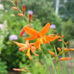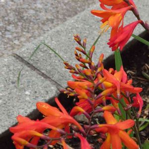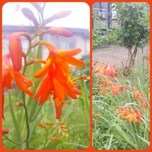 愛犬のお散歩コースにて*・゜゚・🐾 *:.。.♪ .。.:*・♬゜゚・*鮮やかな色🧡 名前を検索したらクロコスミア🧡 ヒメヒオウギズイセン🧡という 名前で親しまれているそうです✨ 今朝は、枯れた紫陽花のお花の剪定💙 早めにした方がいいみたいです😆 今年は、あまり咲きませんでしたので 来年に期待します❣️