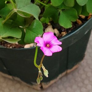 「遊歩道脇で見つけた」 撮影📱2025.11.9 おはようございます😀 熊本市・上江津湖の 遊歩道脇で見つけ撮影📱 イモカタバミ🌼 ピンクの花が遊歩道脇で 一輪咲いて綺麗やったよ😀 太陽の光を受けて輝く 花🌼が素敵やったよ🎵