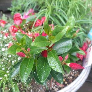 //October 31, 2023// 10月ももう終わりなのですね・・・ サントリーフラワーズさん”サンパラソル” お花が少なくなってきちゃいましたが、 鮮やかな赤色が、冴えています♪ ツボミの形が、シュッとオシャレさん😊