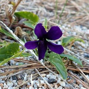 朝の散歩で スミレ 朝、氷点下に近い寒さの中、スミレが咲いていました😵 寒さのためか普段よりさらに紫が濃いです☺️ 海岸の砂浜✨💕