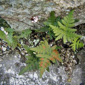 ヒメウラジロ 今治城石垣 毎月4日はシダの日🌿 お正月によく見たウラジロに似ていますが直接は関係ないかも😅 意外と希少種で有るところにはあるけど無いところにはない😵 石灰岩地に多いけどそれ以外でも生えています🐱 撮ったのは今治城犬走り🐕 普段は鍵がかかって入れません😅 今治市とその周辺にはまったく生育していないヒメウラジロがなぜここにあるのか不思議です☺️