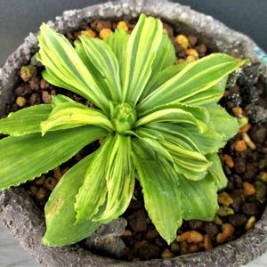 フウラン 佐竹の縞 購入時には葉にたくさんの縞があったのですが今は覆輪になりました😆 しかも鮮やかな黄色の斑に 色合いは金兜に似てますがこの品種は立葉です🐱 高知県の香美郡の佐竹で採取されたと思われます😃 美しいのにその存在に気付かずミズゴケがひどい状態です😭💔