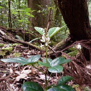 ミヤマトベラ マメ科 案外出会うことが少ない植物です😃 自然度の高い、湿った林下に生えて、こういったところはラン科植物が多いそうです😄 高知植物研究会の人がこの谷でミヤマトベラを見た瞬間 「寒蘭があるかも」って言ったくらいですから😊