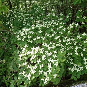 ブナの木の下で咲くヤマボウシ キラキラしたお星さまみたいできれいでした😆 標高は1450m
