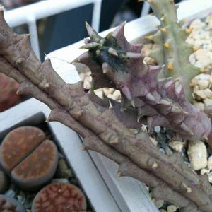ஐ*:.٭ ɢ००Ð ღօʀռíɳɢ ٭:.*ஐೄ 今年初狩の第一弾はガガイモさん🌵 とうとうガガイモにまで手を 出してしまったꉂꉂ(๑˃▽˂๑) フェルニア ソマリカ ハイブリッドꕤ*.゚ どんなお花を咲かす子なのかわからないけどフォルムも気に入った🌈🌈🌈 桃太郎さんのお下がり鉢にIN💚