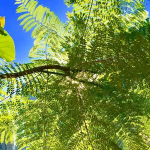 秋そらGREEN☘🍠🍂🍁🌰🎃🌾 ジャガランタを裏側から逆光で写メってみました🤳☀︎*.。 蒸し暑いけどよく晴れた1日でした✨\('ᴗ' )> けど都内にも台風🌀が接近中🌀🌀 大きな被害がない様に( ˇ人ˇ)アーメン!