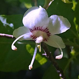 地元のお山パトロール🎵 バイカツツジが咲き始めました♪ 毎年見ていますが、お花は本当に見つけにくいんです。 花は葉が展開した後に、わざわざ葉に隠れるように斜め下を向いて咲くからです 沢山の方が山歩きに来られるので、撮影していると何人かの方に何ですか?と聞かれます。 教えて差し上げるのですが、どこ?どこ?と見つかりにくいんです。 花は直径2㌢ほどで、雄蕊は5本で、上の2本は短く、花糸に白毛が密生して仮雄蕊化し、下部の3本は長く先が曲がっています。 白い花弁に赤紫色の斑点が可愛いです。 梅雨の季節の楽しみなお花です♪ 📷 2024/6/13