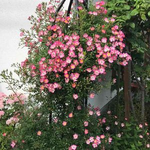 ピンクの小バラが今年は根元近くにも広がりました💓