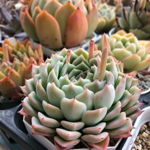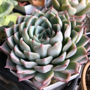 こんにちは🌤 毎日天気予報とにらめっこして、雨降りそうだから軒下から出したりしまったり。 なかなか時間取れないから雨ざらししようと思うのに、気づくと雨マーク消えてて全然降らないし。 いい加減みんなペラペランなってるからお水あげました🚿 プリプリ希望😆