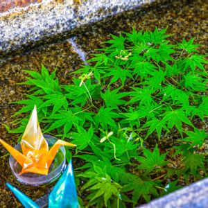 奈良県吉野町 吉野神宮の青紅葉の手水舎🤗🤗 お花の手水舎は最近良く見かけますがこのシンプルな青紅葉…素敵じゃないですか?🤗🤗 緑が水の中で超綺麗でした🤗🤗