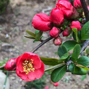 朝パト ② 真っ赤なボケが開花しました🎶🎶🎶