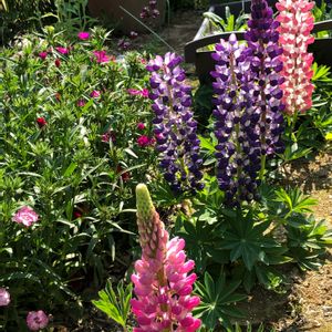 ♡ルピナスの2番花♡ 綺麗に咲き出しました💕 左上にラムズイヤーが 今年は咲いてくれるかな⁉️