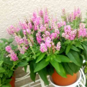 ベロニカ 鮮やかな可愛いピンク色の花🌸 フウセントウワタ、雲龍柳、リンドウと一緒に活けました