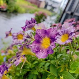 おはようございます*☂︎*̣̩⋆̩ 8月10日(日)☔29℃ 朝は雨降り お花達雨粒キラッ°・*:.。.☆ 軒下のペチュニア達も雨に濡れて居ます😅色艶やかに✨💜🍃 ④日々草達は雨で気持ち良さそう ⑤大きなリングの輪見える👀 トレニア(夏すみれ)可愛い🥰 最近少しずつ花が開花して来ました見る 🏷雨の日曜日 🏷0の付く日は雨粒の日 お盆休み息子達も帰って来ますが雨予報です(´・A・`)☔ 良い時間をお過ごしください