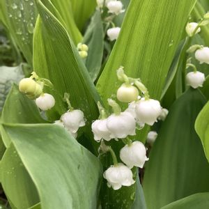 スズラン おはようございます〜 スズランには雨がよく似合いますね! 釣鐘のかたちをした白い花に 雨の雫がついて 涙の粒みたい もう一枚は葉を繁らせてきた ギボウシです💚ドクダミさんも濡れてます。 雨の日曜日、🏷️ビューティフルサンデー つけさせていただきます☔️