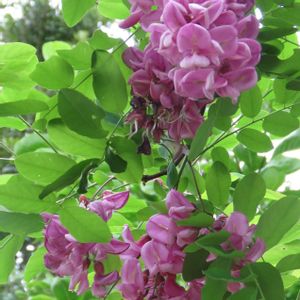 ~今日のお花~ ロビニア カスケードルージュ (別名)ニセアカシア 🏷️雨の日曜日 🏷️花咲く乙女たち♡ 【お花の名前は 同じ別府のGS友達 ローズE.Mさんに 教えて頂きました ありがとうございます】 ハナエンジュとニセアカシアとの交雑種 花の色は紫紅色で藤の花に似て 可愛らしくて いい香りがします♬♡ 日出町 おおがファーム