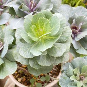 .*✿ 昨年12月に迎えた 福福(ぷくぷく) ハッピーハボタン 下の葉っぱがどんどん落ちていたので もう終わりかなぁ…なんて 思っていたら夏にこの元気🪴🌿 小さかったミニ葉牡丹が立派に……🍀